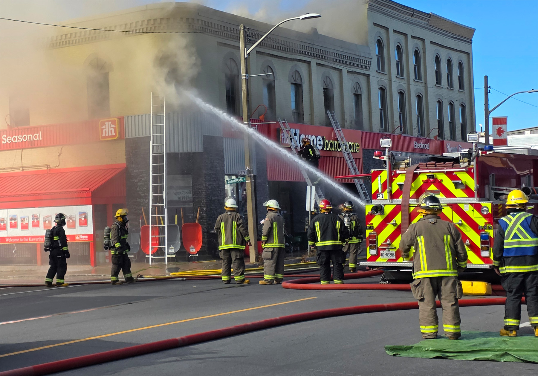 In the afternoon, around 2 o’clock, a fire started in the upstairs apartment areas of the Home Hardware Building on Queen Street in Lakefield.