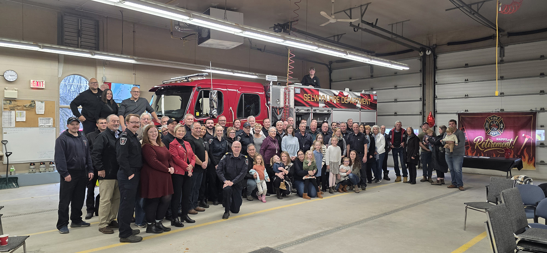 FRIENDS, FAMILY and FIREFIGHTERS! Sunday marked the official retirement of Dave Garrett from the Selwyn Fire Department after 41 years of service. Garrett joined the department March 27, 1984 and rose to the position of Senior Captain. The celebration took place at the Lakefield Fire Hall on Sunday afternoon and pictured above are approximately 50 people showed their appreciation for his service to the community.